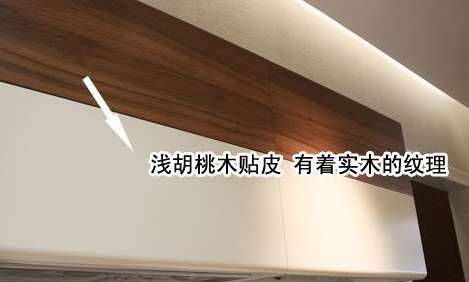 欧派稻草人喜欢橱柜采用了浅胡桃木纹与米黄色PVC的经典组合,吊柜采用胡桃木贴皮,具有实木的质感,两者的搭配更增加了橱柜的品质。