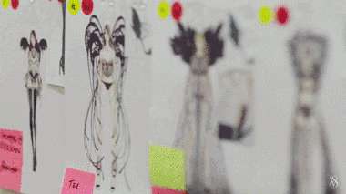 通过设计稿和未完成品来看,此系列几乎清一色裸色底衫,在薄衫上再去做装饰~