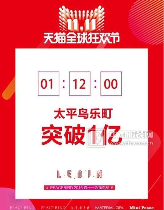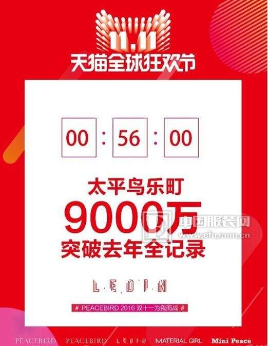 双十一作战中心的数字一直在飞速跳跃。据显示,旗下品牌乐町销售额已经突破1.3亿大关,位居五个子品牌第二名。今天凌晨56分乐町单品牌销售额为9000万,一小时十二分突破一个亿。