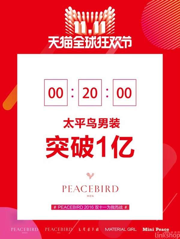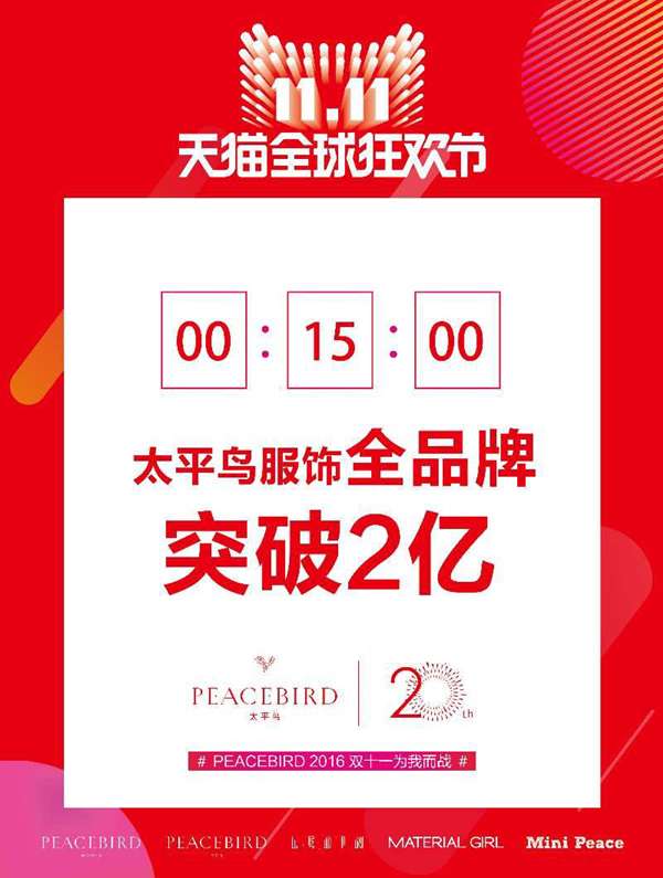 6分钟破亿(去年用时13分钟);15分钟破2亿;20分钟,太平鸟