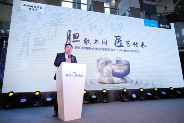 11月11日,“胆·敢不同 匠艺传承”美的厨电联合南宋官窑研究所AH煲新品发布会在上海举行。官窑代表性大师、浙江省非物质文化遗产代表性传承人、南宋官窑研究所所长郦越宁从跨界的角度分享了科技与人文、商业与艺术的观点。