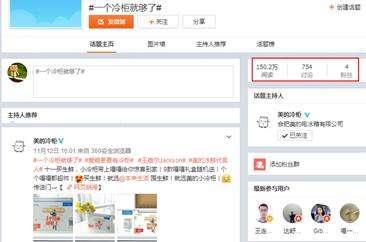 参与到互动活动的,其中不乏知名微博大号如@然后下面就没了、@小5啊等,其中#一个冷柜就够了#话题活动上线3天,就达到150.2万的阅读量。
