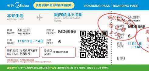 就在双十一临近之际,美的冷柜在微博上发起了#一个冷柜就够了#的互动活动,只要在本来生活网上购买生鲜就有机会获得限量版王嘉尔冷柜快递盒,及一张别致精趣的“飞机票”——Mr生鲜由本来生活运往美的家用冷柜的机票。mini小“冷柜”盒可以让用户直观地感知美的冷柜的真实形象,不再是网上看到的平面图片。而盒子上的文案,“买多少斤都不愁”,“10斤海鲜一次购”,“海鲜蔬菜任意囤”,直接戳中用户购买生鲜的场景、痛点及冷柜的可以囤放大量生鲜的产品利益点。有了对家用冷柜新的认识,许多用户积极在微博上晒出快递盒,参与话题,还获得高额的本来生活兑换券和美的冷柜的抽奖机会。