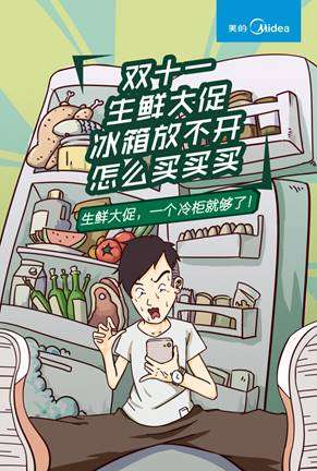 根据消费者洞察,美的冷柜发现许多消费者在外购物时,都存在着因囤放空间不够而纠结的问题。特别是在购买生鲜时最为烦恼,导致生鲜的销量也随之受到一定的影响。但是就在今年美的冷柜和本来生活网合作开展促销活动,线上线下联合出击,优惠的价格,实惠的空间,吸引了大多消费者的关注与购买。