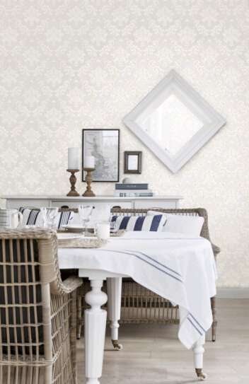 如果你觉得花朵过于女性化,大马士革过于奢华,此款壁纸就是您的首选。经典的图案配以米灰色中性色调,演绎的是截然不同的中性家居之美,水晶蚕丝的质感又为整个空间带来了极强的时尚之感。此款壁纸即可中和欧式家具的繁琐线条,又可以软化现代家具的冰冷与生硬,是居室客厅都可以大面积使用的经典之作。