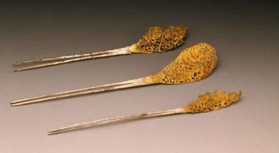 梳篦,盛唐开始流行,在发髻上插几把梳篦,比较讲究的梳子用的是金、银、犀、玉、牙等材料制成,露出半月形梳背,起到了很好的装饰作用。