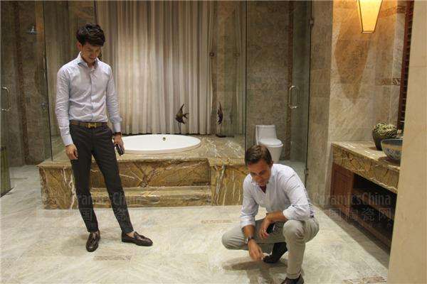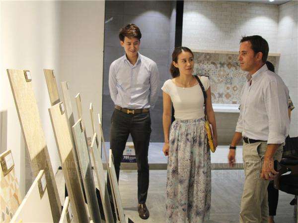 面对五星级的豪华展厅和丰富多彩、琳琅满目的产品表现出了浓厚的兴趣,罗马磁砖董事长、意大利奇尔陶瓷总经理黄岳鸿详细咨询了有关产品种类、价格和供货等方面的情况,并在此基础上展开沟通交流,对欧美陶瓷的产品质量及工艺给予高度评价,高度赞扬欧美陶瓷不断追求产品创新发展的精神,期待双方合作共赢。