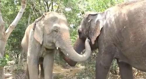 中新网4月26日电 据外媒报道,印度一头在马戏团里呆了40多年的大象日前获得动物保护组织救助,离开马戏团。这头大象在救援中心与自己数十年的好友重逢,三头大象见面便轻轻触碰彼此的鼻子,发出叫声,就像温柔地问候老朋友般,让在场工作人员感动不已。