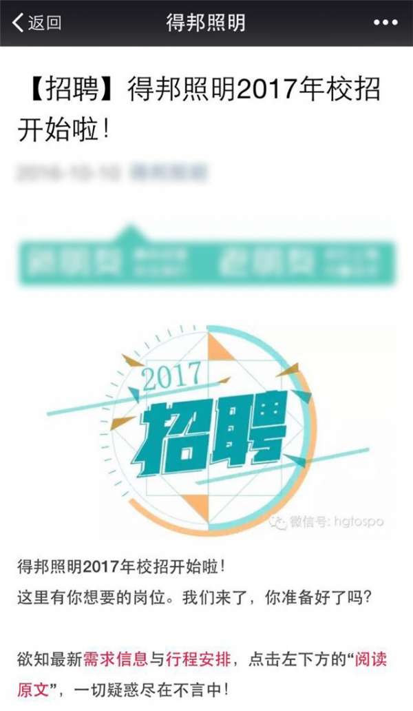 “毕业不迷茫,有梦想你就来”,从10月14日到11月1日,得邦照明高校宣讲会将来到长沙理工大学、长江大学、湖北工业大学、安徽工业大学、郑州大学、西安邮电大学、西安理工大学等高校,并招聘电子类、管理类、经济类、机械类、工业工程类、高分子材料类等专业毕业生。据悉,得邦照明的业务涵盖光源、专业灯具、结构部件、照明工程、室内灯具、照明控制、工程塑料、智慧照明等八大类。