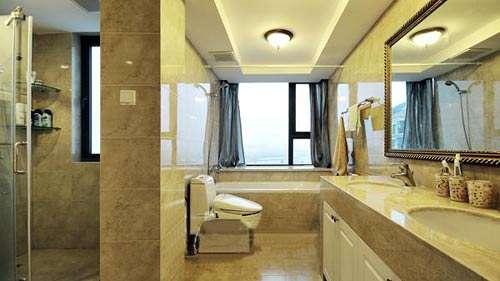 原有两间卫生间,都太小;考虑到房主人实际情况,建议其两间打通并为一间,淋浴、浴缸、洗衣功能都有,而且还可以有舒适的双位台盆,空间也比较宽敞。