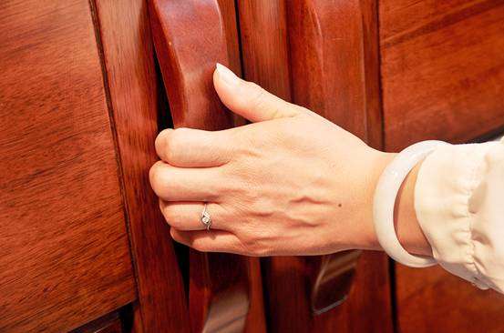 衣柜内部的实木板材使用的是18mm的厚板材,华鹤家具采用全封闭的漆涂工艺,首先一遍底色,一遍打磨,三遍底漆,三遍打磨;然后三遍陈化,接着三遍面漆,又三遍打磨。经过这些工序,木材表面的纹理无比清晰,没有任何的附着物,展现出通透、明亮的风格品位和居家环境,又不失实木家具油漆厚实、饱满的优点。