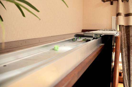 抽屉滑轨采用德国海蒂诗的隐形门轨,置于衣柜顶部。推拉方式有点类似于商务车的推拉门,当关闭时两个柜门处于同一平面,推开时两个柜门会自动重叠。这样的设计节省了非常多的室内空间。带有阻尼的门铰和轨道除了能减少开合时带来的噪音,还能更加安全防止夹手危险。