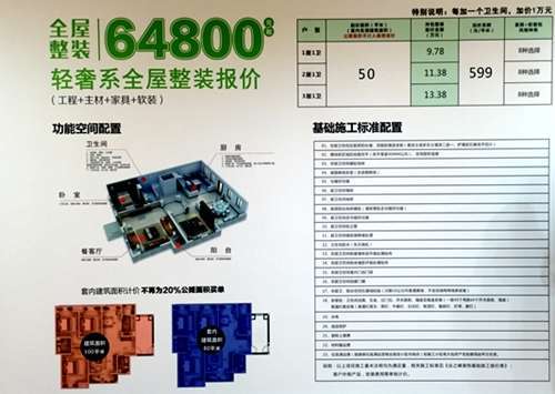 据工作人员介绍,业之峰全屋整装在价格上共分为两个系列:轻奢系列——套内面积50平米97800元起,多出的面积按照599元/平方米计价;极致系列——套内面积50平米112800元起,多出的面积按照799元/平方米计价。两者主材等级不同,家具、软装产品相同,装修收取管理费,税金另算。