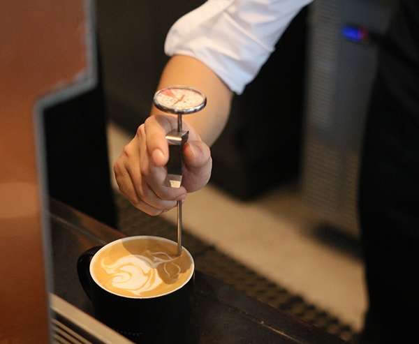 身着黑围裙的咖啡大师还会现场“炫技”,拿铁艺术演示是咖啡大师高超技艺的体现,让顾客的视觉与味觉都能得到满足。技痒的顾客也可尝试参与拉花,参与其中更能体会到过程中不同高度、力度、速度等因素原来是如此重要且不容易掌握的。熟客李先生不禁感慨:“想进阶成为咖啡大师,可不是一日之功就能做到的。”