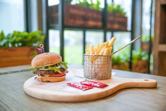而店内最火的是澳爸牛肉堡,每个汉堡里都有一块煎的火候正好的牛排,堆叠上洋葱,生菜,西红柿,芝士,营养搭配合理又丰富,汉堡个头十足,很难一口咬下去,要保持优雅的用餐可是个困难的事情。