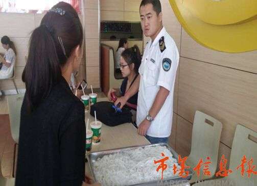 毛经理接着解释,最近家中事情较多,没能与员工交代清楚是他们的错,店里的员工不知道情况就直接卖出去了。导致这些已经变质的大米皮和擀面皮直接流入客人的餐桌上,昨日下午3时许记者通过电话联系到了榆阳区食品药品监督管理局的郭队长,郭 称,据他们早上检查该袁记肉夹馍店的擀面皮的确已经变质,擀面皮供货方的资料已经提供,但是没有该批擀面皮的相关票据。检查中还发现该店有部分员工没有健康证。下一步将进行案件汇总,提交局长办公会进行处罚,据投诉人张先生说,本以为袁记加盟店是个大品牌,管理应该正规,没想到内部这么混乱,没将客户健康安全放在首位,事情发生后没有一位店方人员问候自己身体健康问题,令消费者十分寒心。本报将继续关注。