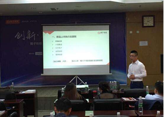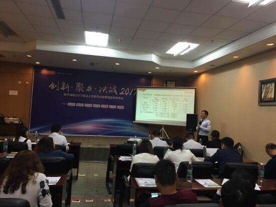 扬子地板总部营销中心销售总监、销售管理部部长何林先生做《2017年新产品上市执行落地方案》的主题演讲。