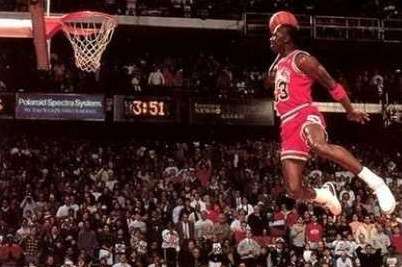 乔丹身高198,体侧垂直弹跳为98厘米,助跑弹跳可以达到120厘米,两次夺得扣篮大赛冠军,但是在历史的论弹跳力里,其实也只能排名第五。