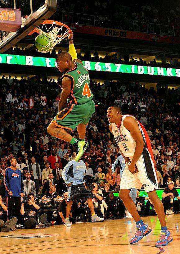 他的身高只有170厘米,他是三届扣篮大赛冠军,内特-罗宾逊弹跳高度为112厘米,难以想象170的他能够隔扣两米多的中锋