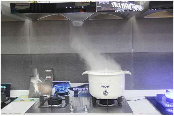 帅康吸油烟机风量20m3/min,风压400pa,测评员现场开启测试,吸烟、排烟非常迅速。油烟瞬间被吸入烟机并排出,真正做到人烟隔离的效果。