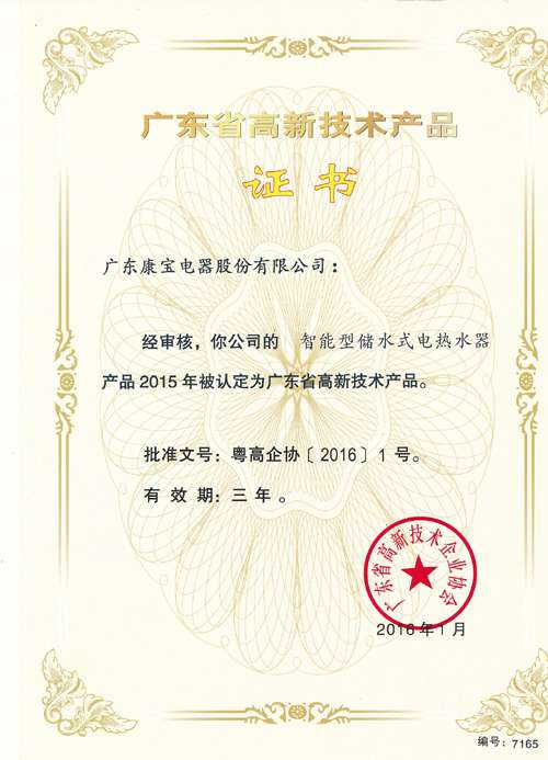 日前,广东省高新技术企业协会发布了《关于公布广东省2015年度通过认定高新技术产品的通知》,广东康宝电器股份有限公司生产的智能嵌入式消毒柜、智能储水式电热水器、节能型吸油烟机等三类产品被认定为广东省高新技术产品(证书有效期为三年)。