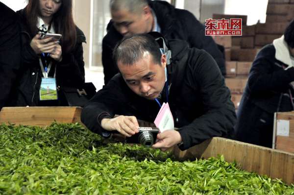 记者们纷纷拿出相机拍摄制茶过程。