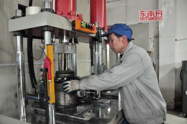 图为御茶园内制茶师傅正在压制白茶饼。