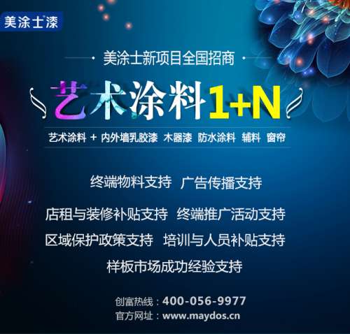 良好的产品能吸引消费者,而良好的经营策略能打开市场!作为集团着力打造全新项目,美涂士推出“艺术涂料1+N”加盟模式,配备七大支持政策,为合作伙伴一路保驾护航!