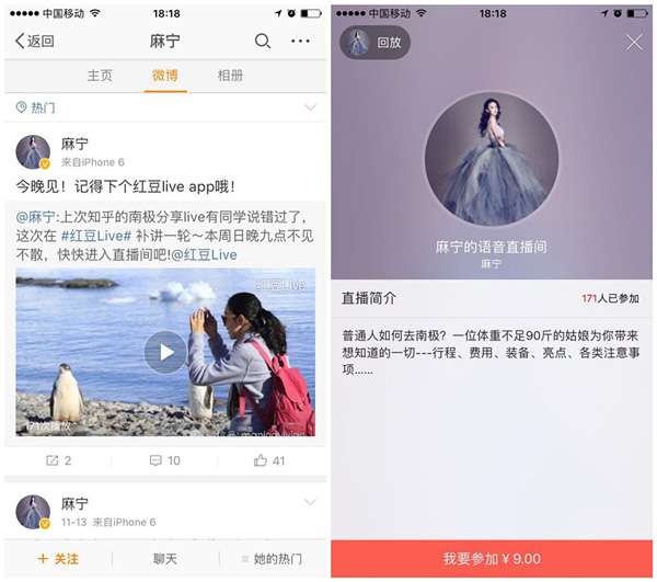 据了解,此次麻宁在红豆Live付费直播,正值红豆Live接入微博SDK,与微博实现内容打通。网友可在微博直接购买麻宁本场的付费直播,并进行互动、付费问答等,无需再安装红豆Live app。直播结束后,也能直接通过微博观看回放、付费购买等。而得益于微博SDK的接入,本次付费直播的购买人数超过了麻宁个人在其他付费问答平台的参与人数。