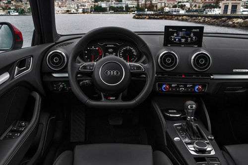 (奥迪A3三厢价格35TFSI低配多少钱)全新奥迪A3的内饰采用了“Lessismore”(少就是多)的设计理念,中控台整体给人的感觉简洁、明了。中控台以一根晶莹剔透的饰条进行上下功能区的分割,上部有一个7英寸的彩色电动升降显示屏和4个圆形出风口。至于中控台造型,两厢和三厢完全一样。