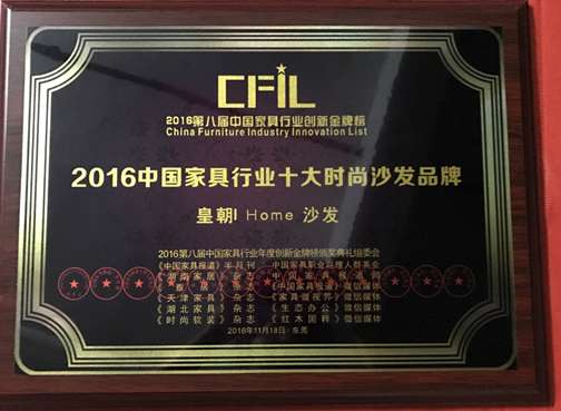 在每年一度的论坛上,对年度创新金牌榜进行颁奖是论坛的重头戏,金牌榜通过评选对行业中的优秀品牌进行表彰颁奖,当天皇朝家私Ihome系列沙发一举斩获2016年中国家具行业十大时尚沙发品牌,据悉,Ihome为皇朝家私新推出的沙发系列,以现代家庭生活方式为基础,以生活艺术为主导,满足年轻一代对艺术居家空间的需求。同时,延续皇朝一贯对品质的追求,Ihome系列在“精致妥帖内外坚固”的理念下,采用抗水防腐的俄罗斯落叶松骨架木材,榫卯连接技术作为内部结构,提升沙发整体稳定性,同时使用精心制作海绵和进口高级棉布提升了沙发的舒适度。