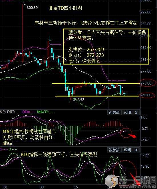 因美国数据强劲,市场加息预期增强,黄金T+D周三下跌0.04元,跌幅0.02%,收272.80元/克,最高报价273.35元/克,最低报价271.99元/克。成交53902手,较上一