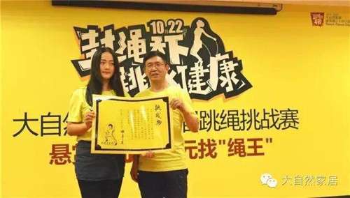 大自然家居董事长佘学彬迎战,发起跳绳约战,结果,被KO的视频点击量分分钟过万,事情闹大了,这哪行?于是大自然家居内部纷纷苦练绳功,微信一出,引起众人关注,看来这不玩大点不行啊!