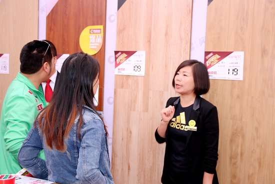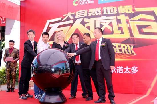 “万人疯抢”活动中,中国地板控股有限公司执行董事、中国区总裁佘建彬先生,中国地板控股有限公司地板事业部常务副总经理、销售中心总经理易鸣先生,中国地板控股有限公司进口地板常务副总经理秦阳光先生,中国地板控股有限公司柯拉尼橱柜总经理代光华先生,中国地板控股有限公司辅料事业部总经理郭诚先生,中国地板控股有限公司地板事业部、产品中心总经理谢樱飞先生,以及华帝厨电王宪先生出席活动现场并在舞台上开启了此次活动的启动仪式。