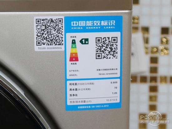 从能效等级来看,这款小天鹅洗衣机达到了国家一级能效标准,洗净比达到了1.05,整体能效和洗净等级都处于优秀水平。