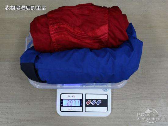 三件衣物浸湿后的重量为2971克,接下来的脱水测试也将针对这个重量去做对比。