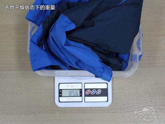 为了体验一下烘干的性能,笔者这次找来一件衣物由各种混合材质组成的冲锋衣来进行测试,衣物在干燥的状态下,重量是856克。