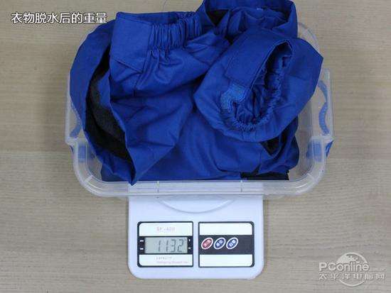 而衣物在洗衣结束,经过脱水后的重量为1132克,烘干测试也将以这件脱水后的衣物来进行。