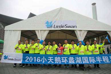 在最近的2016环蠡湖国际半程马拉松顶级赛事中,小天鹅以独家冠名的方式,为2016环蠡湖半程马拉松加油助威,同时展现了小天鹅品牌中所倡导的体育精神-:专注、专心、专一。马拉松的内涵早已超出它本身的体育性质,更多的是一种对于超越自己的坚守和魄力。在创新科研的道路上的小天鹅,也仿佛在进行着一场属于自己的马拉松:从1978年第一台