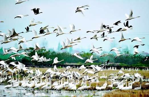 湖北日报讯 23日,黄梅龙感湖国家级自然保护区,天鹅、大雁等候鸟自由嬉戏。随着生态环境改善,来此越冬的候鸟逐年增多,已达8万余只。