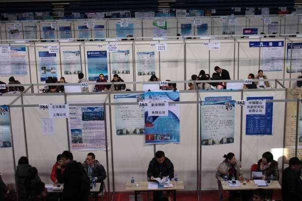 同学们在工作人员的指引下,陆续进入招聘会场。