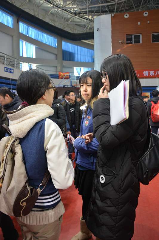 前来应聘的同学们不畏严寒,
