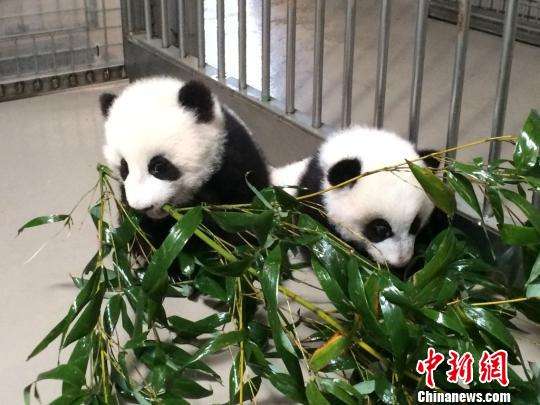 长势良好的大熊猫龙凤胎。陈敏 摄