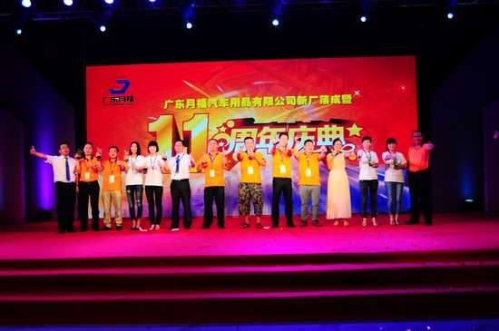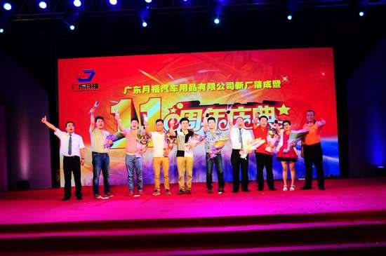 2014年6月8日,广东月福汽车用品有限公司“新厂落成暨11周年庆典”活动于广东开平翠山湖新区的月福新研发生产基地隆重举行,活动包括新厂开业仪式、新厂参观活动、庆典晚会等主要环节。地方主管部门领导、全国各地众多经销商、合作伙伴、各界友人齐聚一堂,共同庆贺!
