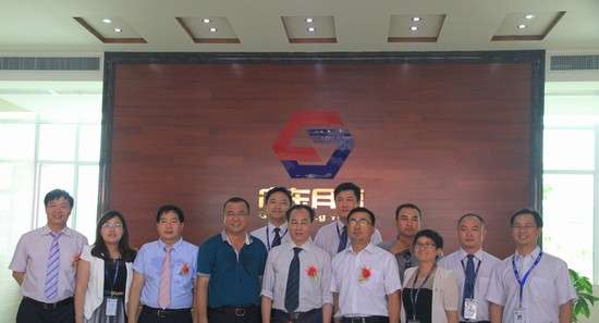 左起:广东月福董事方杜明先生、广东月福总经理林壮先生、翠山湖管委会副主任吴天恩先生、广东月福董事长李养先生、开平市副市长兼翠山湖管委会主任凌华威先生、开平市工商联主席周志峰先生、广东月福副总经理付志刚先生