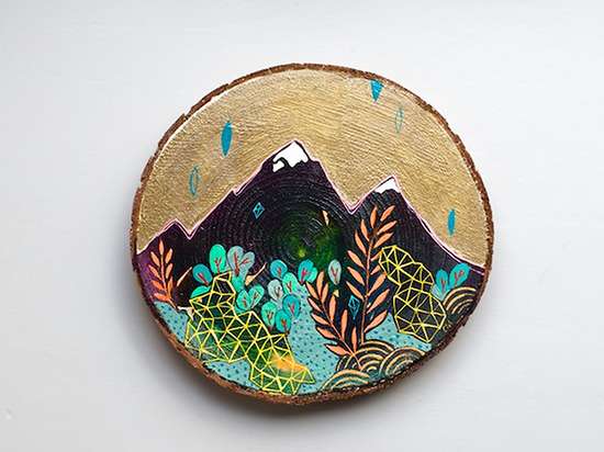 、编织、摄影、拼贴都是她描绘自然之美的“画笔”。一次偶然的机会Cathy尝试了在雪松木上结合松木纹绘“松木画”,没想到效果却出奇的好,从此Cathy对“松木画”的爱便一发而不可收。松木纹的脉络肌理给的画增添了些许迷幻的味道,如迷迭香般有一种微妙的“