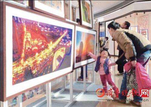 “爸爸看这儿!”摄影展上一名小观众被照片吸引住。姜美荣摄