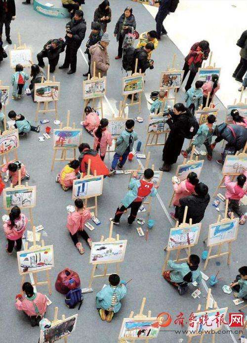 齐鲁无人机嘉年华活动上,百名小画师展开了丰富的想象。 本报记者 张中 摄