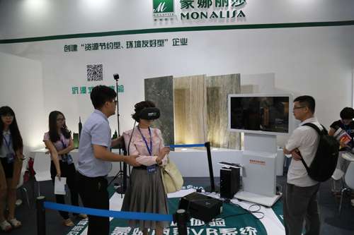 蒙娜丽莎集团作为陶瓷行业受邀单位在“智能制造馆”亮相,展示陶瓷薄板系统性解决方案、瓷艺个性定制及沉浸式VR体验系统。走进蒙娜丽莎展位,扑面而来的是浓郁的现代化、科技化气息。市民可以通过佩戴VR眼镜及周边其他传感装备,身临其境感受蒙娜丽莎