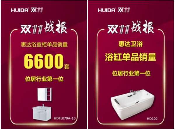 实现了销售大捷,在天猫多个品类单品畅销榜上,惠达卫浴的浴室柜、浴缸、智能马桶等多个品类单品勇夺销量冠军,其中智能马桶HDE3001G单品销量突破10000台,居行业第一。此外,销售额同比激增10倍,令业界艳羡。
